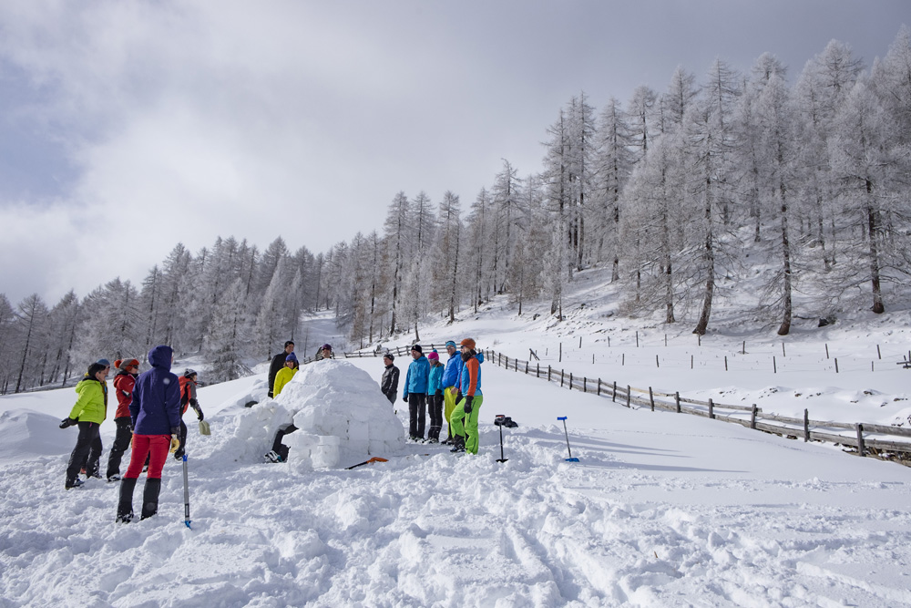 Im Winter können sie mit uns Schneeschuhwandern, Skitouren unternehmen, Iglus bauen und übernachten, Eisklettern. Wir bieten auch Lawinenseminare und Trainings zum richtigen Verhalten bei Lawinenunfällen